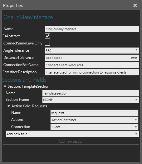 | AngleTolerance | Defines an angle for restricting a physical connection to the interface. Generally, a smaller angle is used to require a front-end connection attempt instead of allowing a component to approach the interface from behind or its side. |