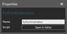 | Script | Defines the script used for defining the properties of a kinematics object. |