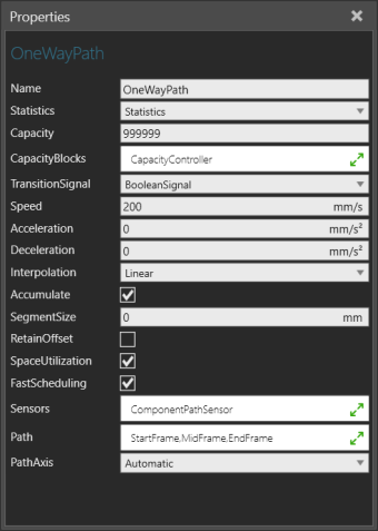 | Accumulate | Defines if the path is disabled when a component is blocked from leaving. A True value stops the path. A False value will not stop the path. |