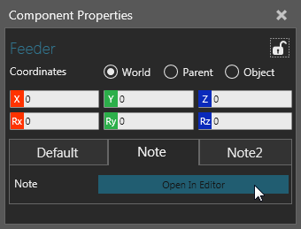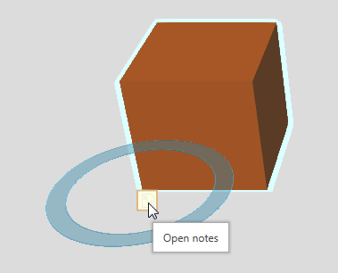 In the 3D world, you can click the note icon of a selected component to view and edit its notes.