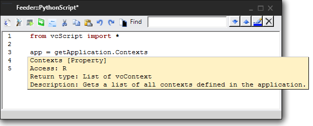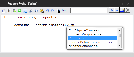 A Python Script allows you to write a script for manipulating components, commands and the application using Python programming language (stackless, version 2.7).