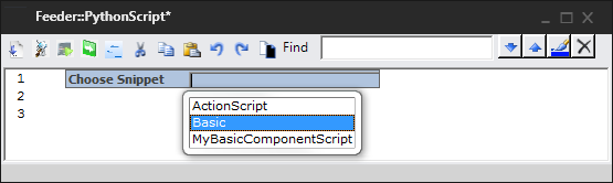 | Snippets | Allows you to insert a code snippet in the script. |