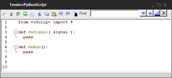 | Find | Allows you to search the script for items matching keywords in the Search box. |