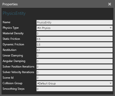 | Physics Type | Defines how the entity is affected by physics during simulation.