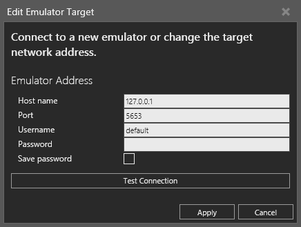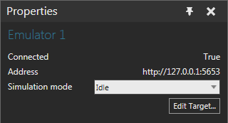 | Edit Target | Opens the Edit Emulator Target task pane, thereby allowing you to edit the network address of the emulator. |
