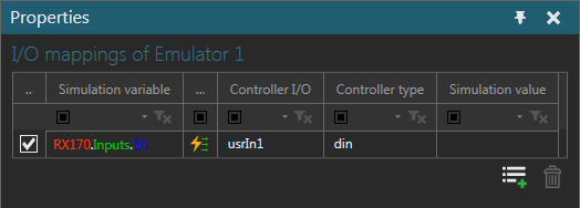 | Connected | Indicates if the I/O is mapped to simulation variable. |