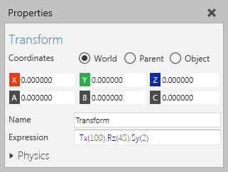 | Expression | Defines an expression (matrix) that when evaluated transforms child features. The given expression is evaluated based on the order of operations and operator precedence. |