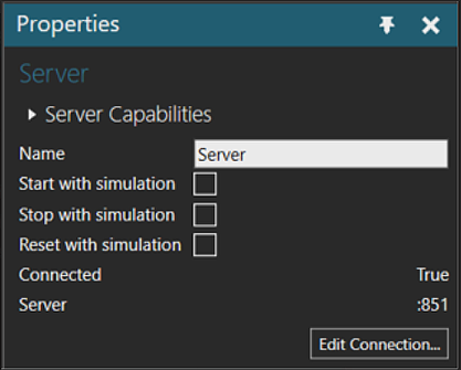 若要停用连接,点击连接/断开连接按钮,然后在属性面板的服务器功能下,验证已连接是否设置为False。