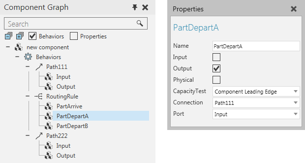 Flow type behaviors have ports, which are connectors that support the transfer of components within a component and to other components.