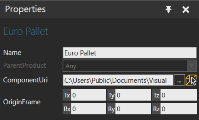 - ComponentUri is a component associated with the product. You have the option to use the VCID or URI of a component, or to select the component in the 3D world. When using the VCID of a component, type "vcid:" followed by the VCID, and then press ENTER. Any properties associated with a component are used as the default component properties unless overwritten using the Component Properties as described below.