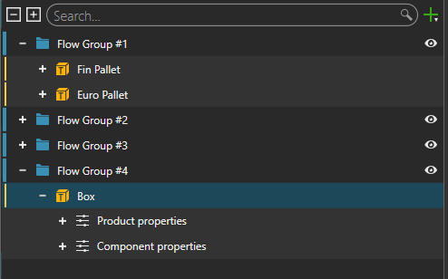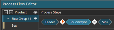 A flow group controls the flow of its products from one process to another. In all cases, products of the same flow group have the same flow. For example, different types of boxes could belong to one flow group and go through the same process steps.
