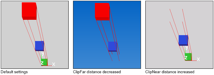 | ClipNear | Real | RW | Defines how close objects can be to a camera in order to be displayed. If objects are too close then they are not visible. |