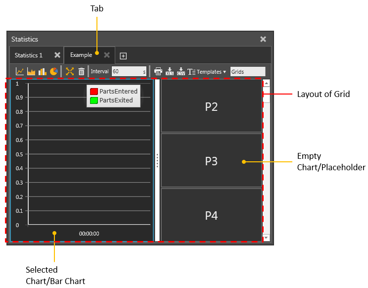 vcStatisticsTab is a tab listed in a Statistics dashboard and contains one or more charts which are organized in a grid.