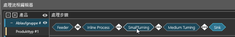 相同名稱的程序常式自動歸類為一個群組。這將簡化產品流到元件不同的相同程序。