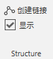 显示结构命令可用于显示机器人的节点/链接结构及其自由度。各节点的位置会作为着色环显示:黑色为根节点,黄色为可用节点,绿色为选中节点。节点偏差显示为青色骨骼状,从一个父节点指向其各个子节点。各节点的关节轴显示为着色箭头:红色为X轴,绿色为Y轴,蓝色为Z轴。