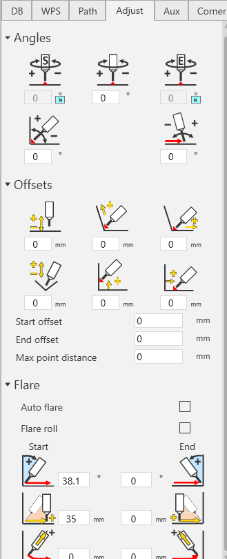 - 扩张角度:焊枪需偏离起点,这样它就不会与墙面(如果存在)发生碰撞。