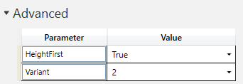 创建环形搜索时,软件会自动创建两个高级参数:“HeightFirst” 和 “Variant”。您可从下拉菜单中选择所需的值。