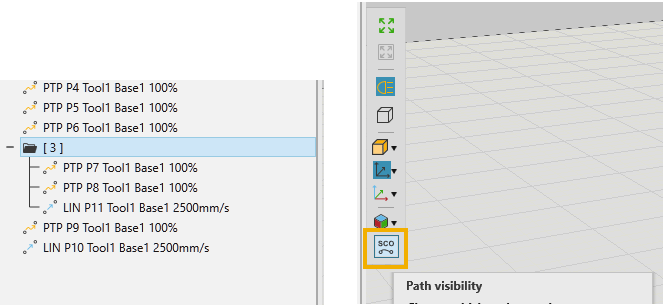 可以根据需要切换路径可见性,以便在3D窗口中查看程序语句预览。
