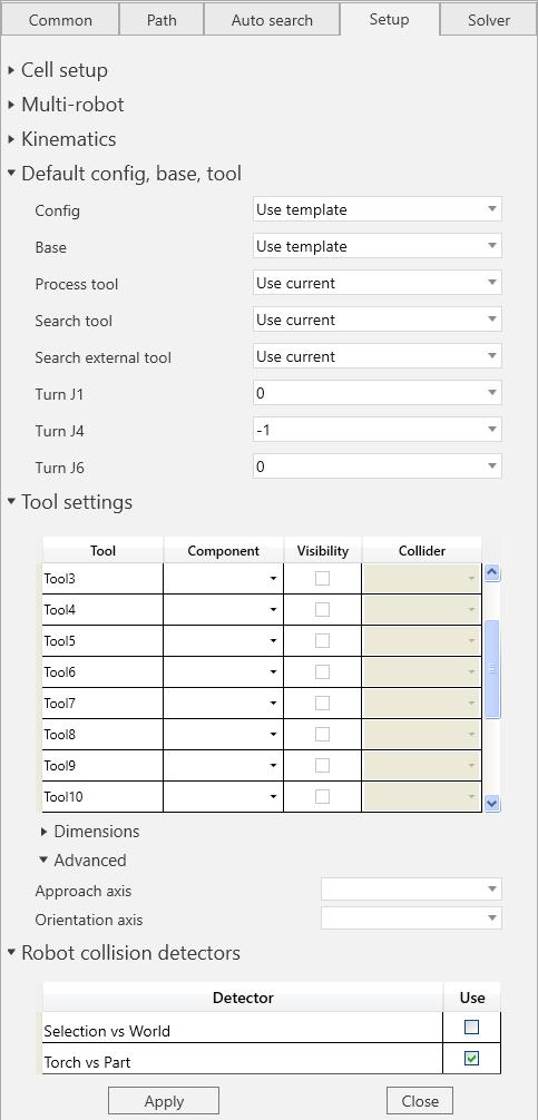 机器人碰撞检测器:检测器启用之后,将由路径检查中描述的路径检查器使用。如果勾选 WP,则选中的焊接和搜索语句的工件会自动添加到检测器的 B 列表中。