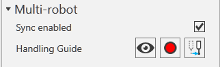 勾选“启用同步”选项后,即可在同步模式下使用 2 台或更多机器人。您可以利用操作指南按钮隐藏、保存操作指南并移动其位置。
