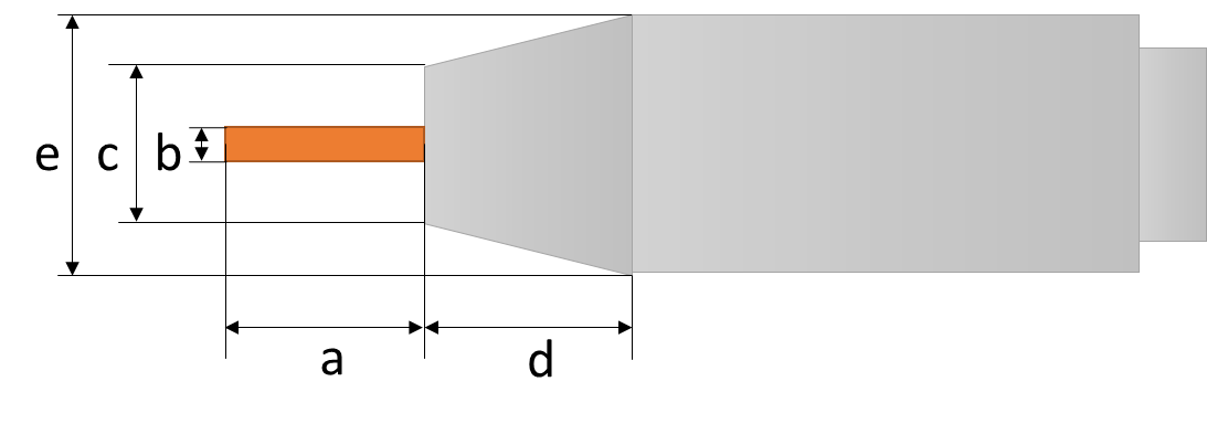 尺寸:使用喷嘴进行触摸传感时,应在相应字段中设置喷嘴的尺寸。测量说明如下所示。