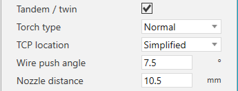 焊枪类型 = ["Normal", "Rotated"]焊丝的对齐方式,“Normal”表示焊丝在同一直线上