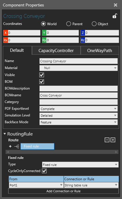 | Product Type Rule | Routes components to a selected port based on a selected Product