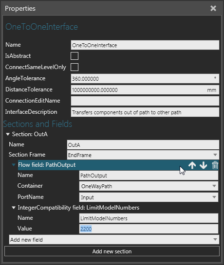 If you want to connect behaviors in a component to behaviors in another component, use interfaces. An interface is a type of connector that can connect to one or many other connectors. In order to form a connection between two interfaces, they must be compatible and have available ports. That is, the section and fields of the interfaces must match up with one another and support the connection. A section is like an electrical plug and its fields are like the pins of that plug. Any number of sections can be used to support different types of connections. The order and types of fields used in a section are important since they define the logic of the connector. For example, you can connect the output of a path in one component to the input of a path in a different component. If you were to do this internally, you would use the port sub-elements of flow type behaviors.
