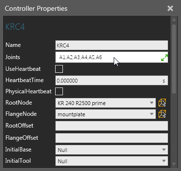 Component properties can be referenced within the scope of a component to assign values and write expressions. This allows you to make the geometry of a node and other properties parametric. Behavior properties that have unique names can also be referenced by using this syntax, <BehaviorName>::<BehaviorProperty>. Additional joint properties are added to a node when its joint is assigned to a controller.