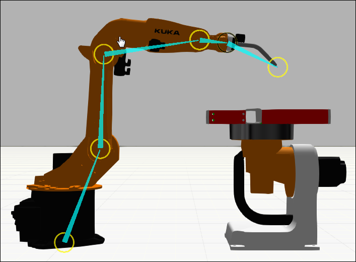 When the node structure of a component is visualized in the 3D world, a node offset and its degree of freedom is shown as a rig that forms the skeleton of a component. A node is made interactive by its joint properties, so when the joint of a node is defined you can use the Interact command to jog and interact with that joint.