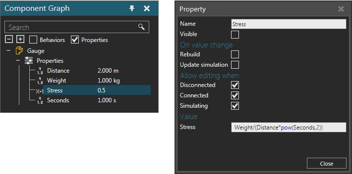 In some cases, you may want to form your own units or calculations using Expression properties, which are generally hidden and/or referenced in a read-only property that can display the calculated value of the expression.