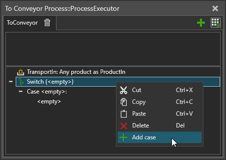 To add a new case, point to switch statement in a process routine, then right-click and select Add case.