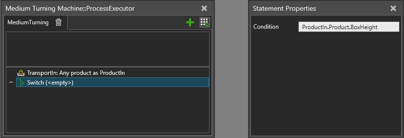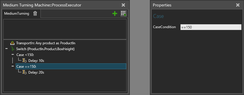 Select a case and define the CaseCondition property value. It is a string property that is parsed into a comparison operator and the actual value expression.
