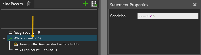 | Condition | Defines an expression that when evaluated must return a True or False value. True value executes a scope of statements, and then the program would loop back and reevaluate Condition before executing the next iteration. False value does not execute a scope of statements and ends the statement.
