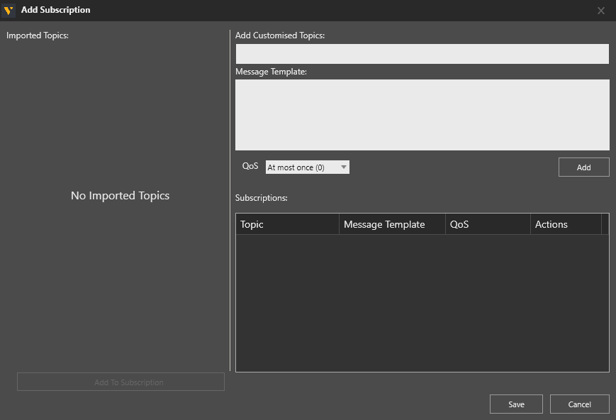 Hinweis: Siehe den Abschnitt Weitere Hinweise unten für Syntaxbeispiele. - Stellen Sie die gewünschte QoS-Stufe ein. Standardmäßig ist die Stufe At most once (0).