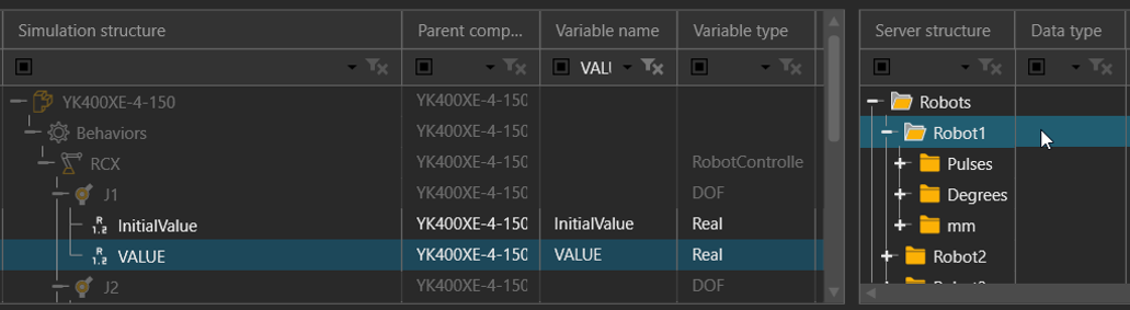 - For example, map the VALUE property of each degree of freedom (DOF)/Joint of the robot component to a joint of the corresponding mechanical unit in the controller. This way, the controller drives the robot in the 3D world.