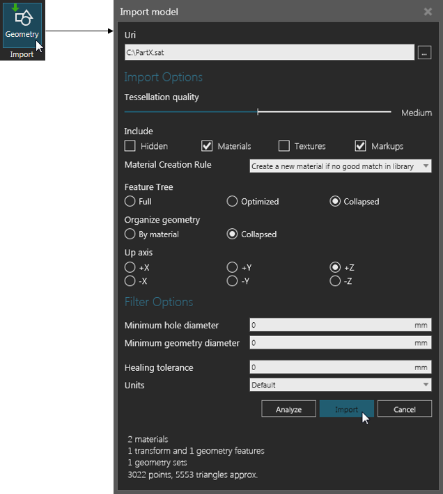 Another option is to use an Import tool to analyze CAD files and customize how they are imported as components.