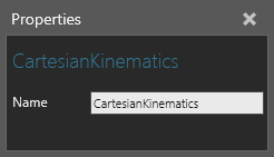 In most cases, the Robot Controller using the Cartesian Kinematics is responsible for defining the kinematic nature of the component in a Cartesian space. That is, the kinematic structure of the component and its robot controller's RootNode, FlangeNode, RootOffset and FlangeOffset properties provide the values needed by the kinematics solver. In some cases, you can use Cartesian Kinematics for components that are not robots. For example, a forklift can have Cartesian Kinematics in which a node without any geometry is defined as the RootNode, and the FlangeNode is the node containing the geometry of the forklift.