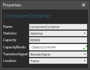| TransitionSignal | Defines a Boolean Signal to signal the arrival and departure of a component in the container. A True value signals the arrival of a component. A False value signals the departure of a component. |