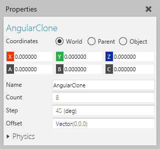 | Step | Defines the angle (in degrees) of separation between each clone. |