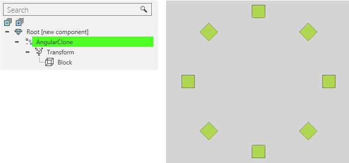 An Angular Clone feature clones its child features around its Z-axis.
