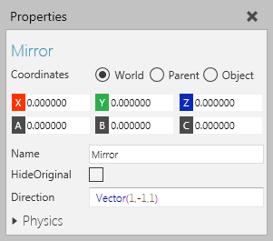 | Direction | Defines the direction and scale factor for mirroring child features. |