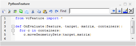 | from vcFeature import * def OnEvaluate(feature, target, matrix, containers): for c in containers: c.moveGeometrySets(target,matrix) |