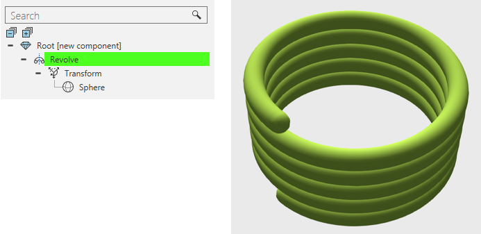 A Revolve feature sweeps the geometry of child features along a path, thereby constructing new geometry.