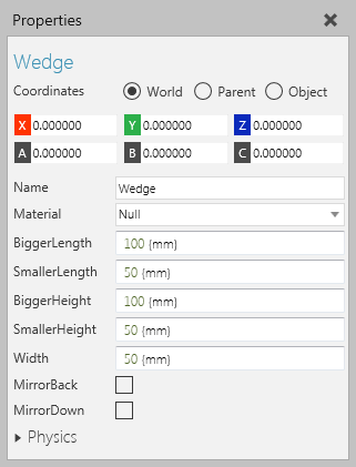 | SmallerLength | Defines the top length of the wedge in its X-axis. |