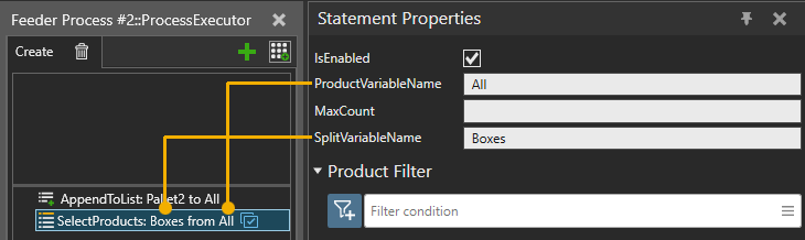A SelectProducts statement allows you to split filtered product types from variable to a new variable.