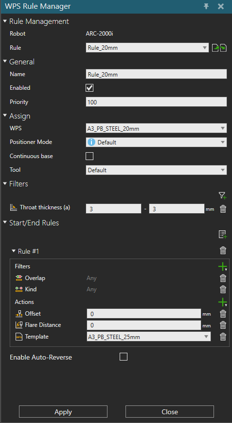 WPS 规则管理器用于创建、编辑和维护焊接工艺规范(WPS)规则。在WPS 规则管理器中定义的规则可通过WPS 规则选择器应用到焊接语句中。