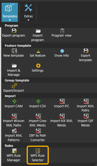 WPS 规则选择器用于查找并应用预定义的 WPS 规则到焊接语句。您可以使用WPS 规则管理器创建和管理 WPS 规则。