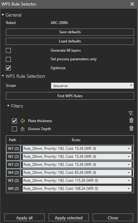- 序列:查找当前序列中所有焊缝的 WPS 规则。