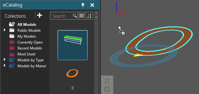 Generally, components are added from the eCatalog panel to the 3D world layout.